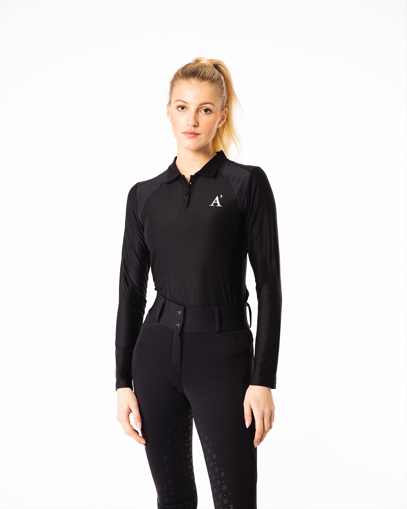 Introducing the Performance Longsleeve Poloshirt Black, the ultimate equestrian shirt for active women. This stylish women's poloshirt combines comfort and functionality, making it perfect for riding or training. Crafted from breathable fabric, this long sleeve polo shirt features moisture-wicking technology, ensuring you stay cool and dry. Whether you need a reliable performance polo for the saddle or a fashionable sport poloshirt for casual outings, this longsleeve sportshirt is your go-to choice for versatility and style.