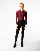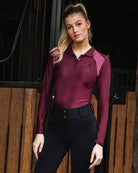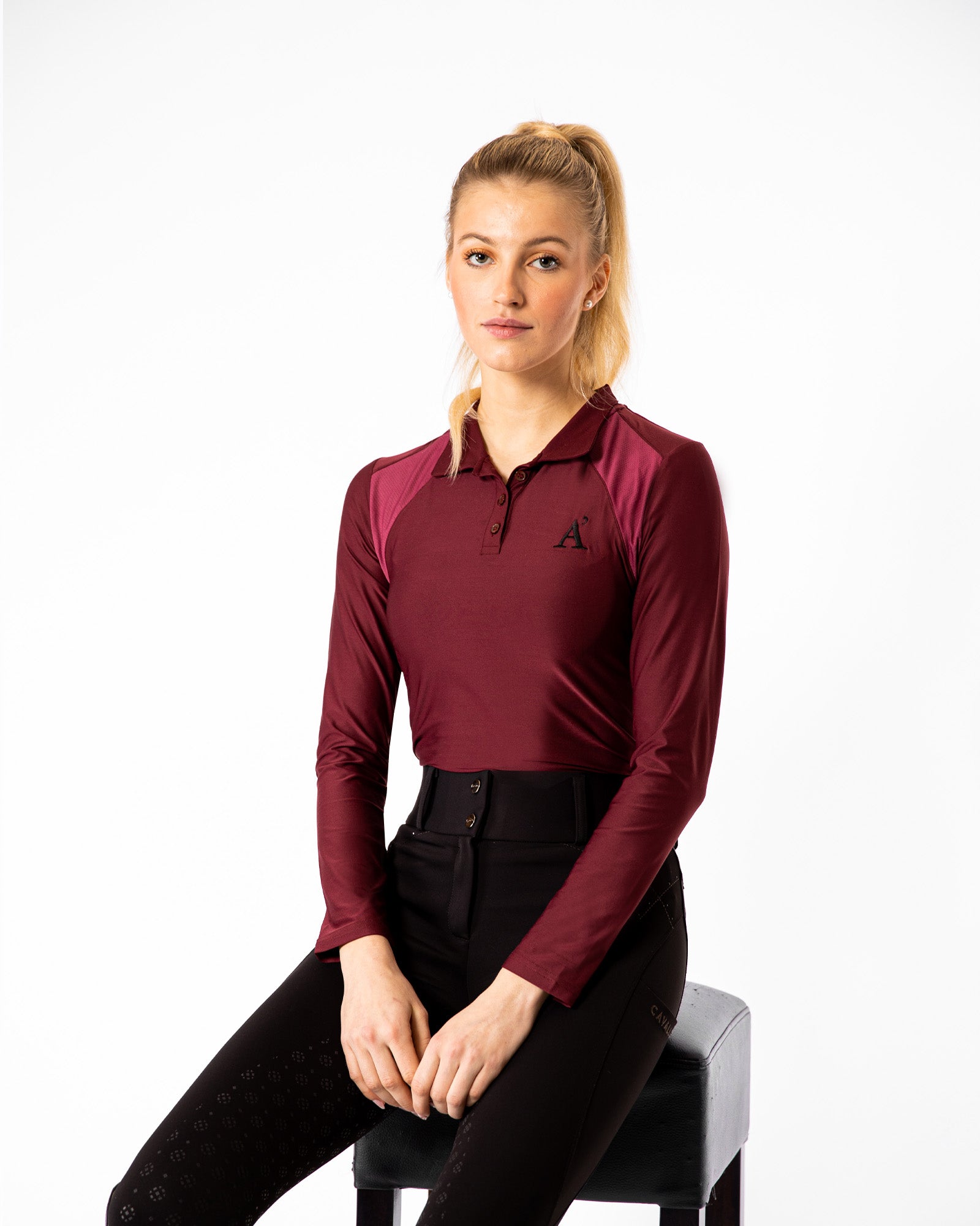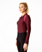 Introducing the Performance Longsleeve Poloshirt Bordeaux Red, the ultimate equestrian shirt for active women. This stylish women's poloshirt combines comfort and functionality, making it perfect for riding or training. Crafted from breathable fabric, this long sleeve polo shirt features moisture-wicking technology, ensuring you stay cool and dry. Whether you need a reliable performance polo for the saddle or a fashionable sport poloshirt for casual outings, this longsleeve sportshirt is your go-to choice for versatility and style.