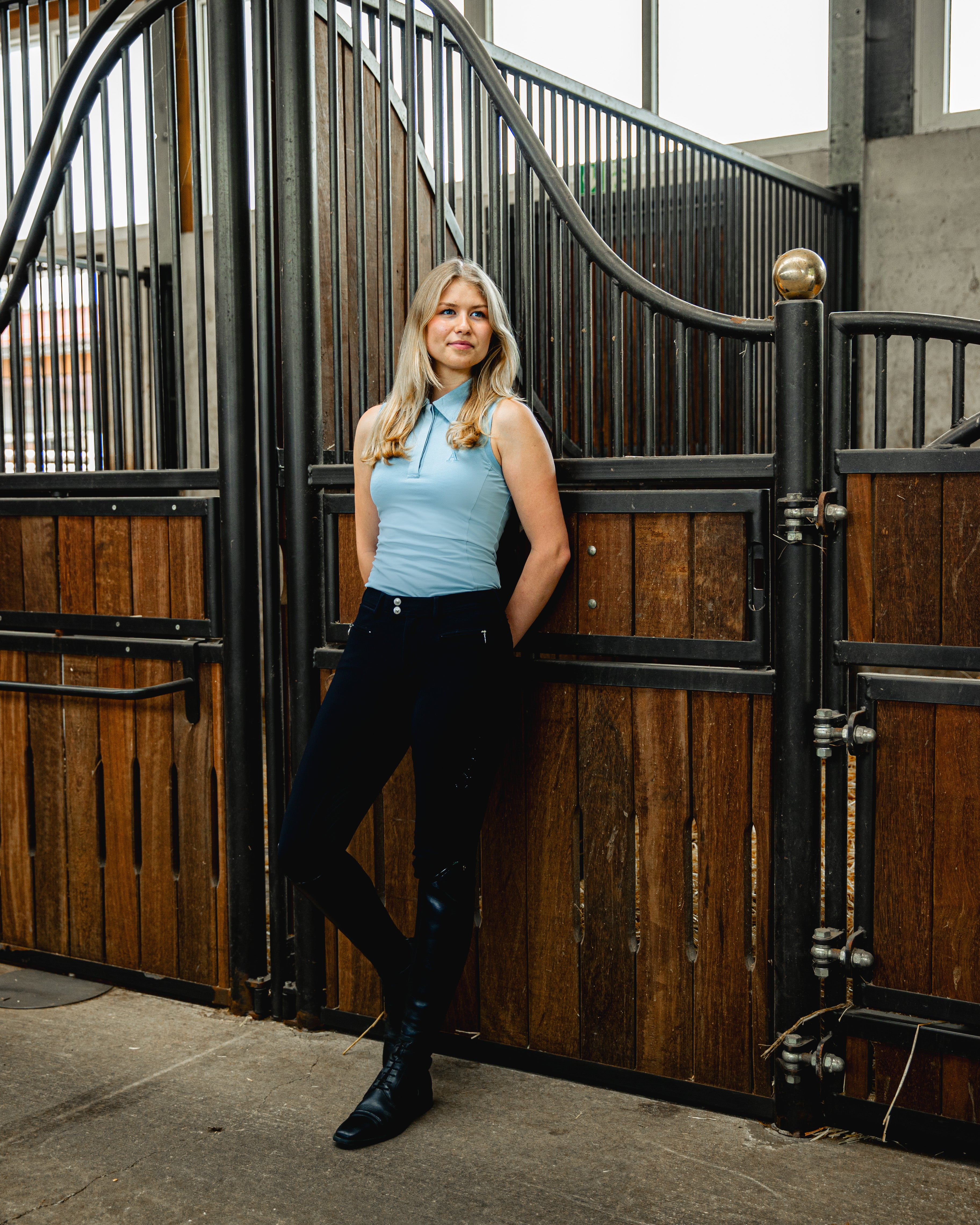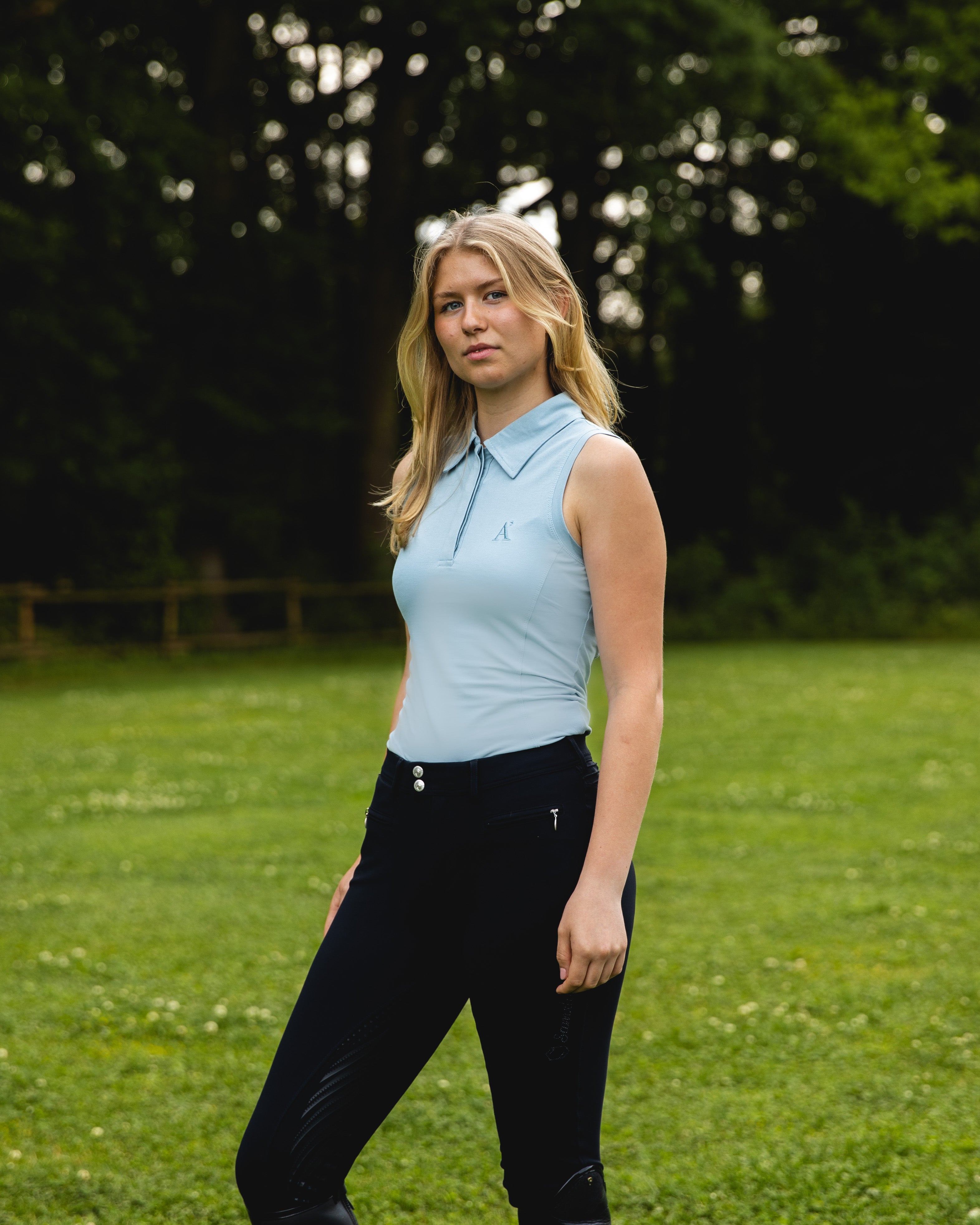 Schwarzes Poloshirt für Damen mit weißen Details. Dehnbares, atmungsaktives Material und Mesh-Einsätzen für den optimalen Komfort. Perfekt fürs Training und für Workouts geeignet. Trendiges Design mit einzigartigen Details in Schwarz und Weiß.