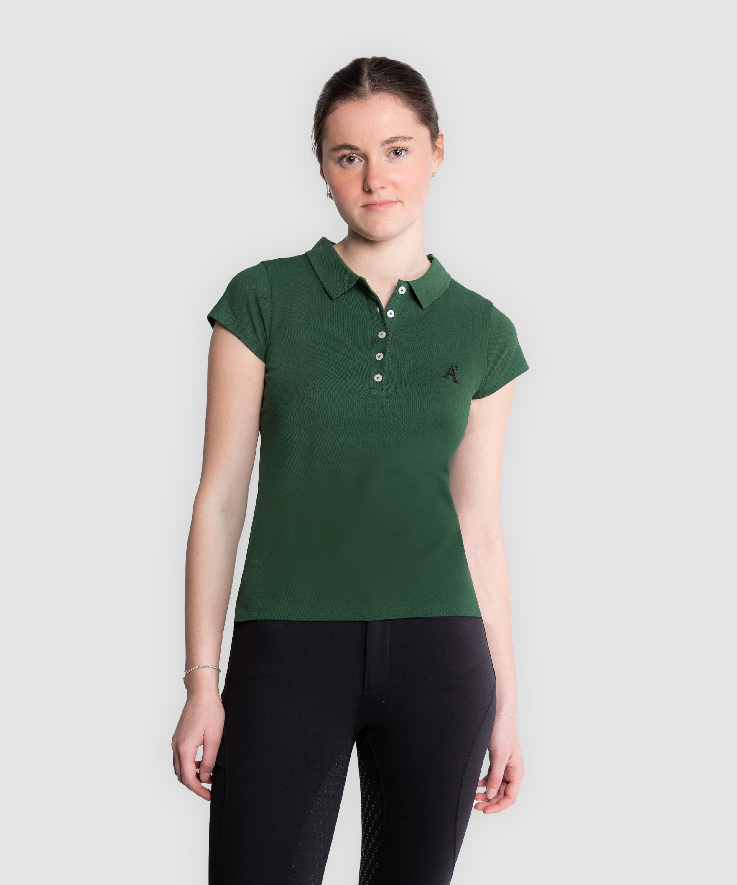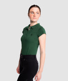 Kurzärmliges Damen-Poloshirt im Slim Fit aus Baumwollpiqué made in Portugal. Unser Slim-Fit Poloshirt hat eine frontale Knopfleiste mit fünf Perlmuttknöpfen, die farblich auf das Shirt abgestimmt sind. Kragen und Ärmelbündchen aus Feinstrick für einen femininen, modernen Look. Kleine Öffnungen an den Enden der seitlichen Nähte. Rigby Go Stickerei auf der Brust und personalisierte Nahtbänder.